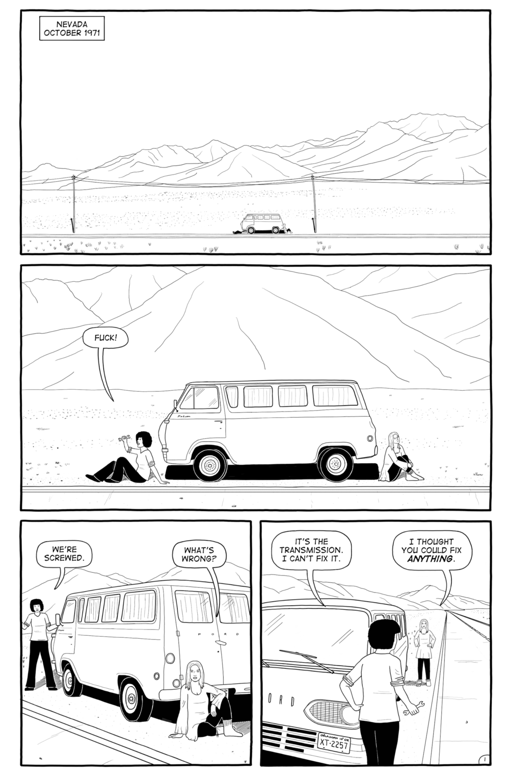 Two young women find themselves stuck in the Nevada desert while traveling cross-country. A tale of crime, drugs, and racism set in 1971.